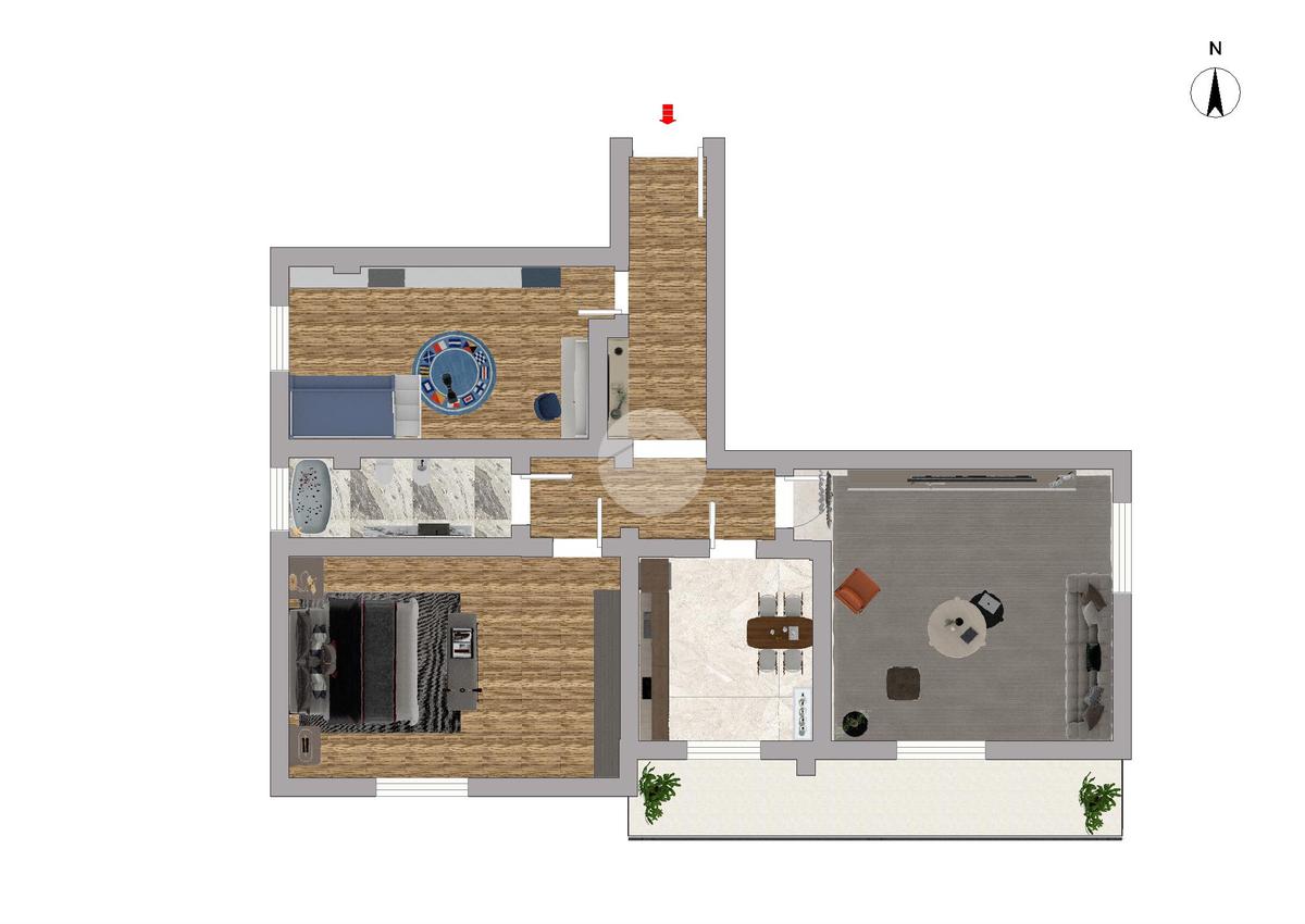 Proponiamo in vendita un appartamento di 89 mq situato a un piano basso di un edificio dotato di ascensore e servizio di portineria.