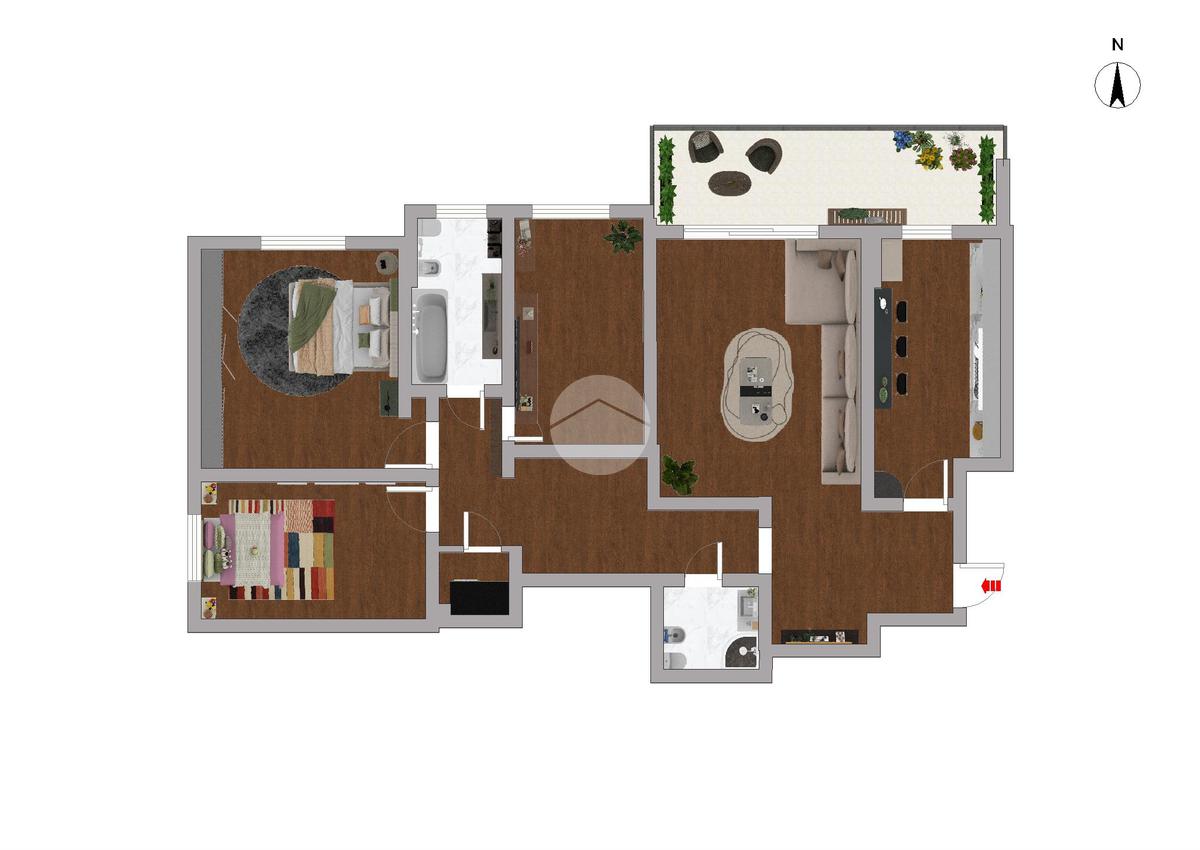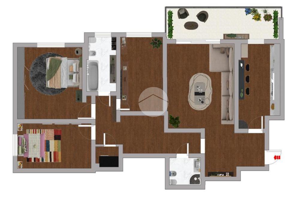 L'immobile è composto da: Ingresso in disimpegno, soggiorno doppio, cucina, 2 camere da letto, 2 bagni, ripostiglio e balcone. Completa la soluzione una cantina di pertinenza.